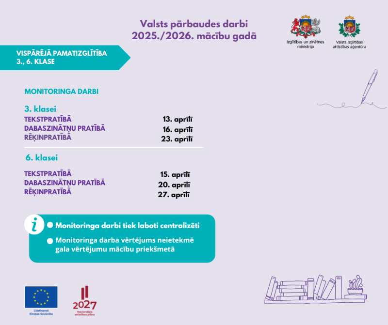 2025./2026. mācību gada valsts pārbaudes darbu grafiks