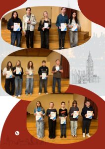 Dalīties Pirms skolēnu rudens brīvlaika skolā notika angļu valodas valsts 55.olimpiādes 1.posms. Uz otro – novada posmu, kas notiks 4.11.-6.11.25. Siguldas Valsts ģimnāzijā pārraudzītā tiešsaistes režīmā, tiek izvirzīti sekojoši skolēni: 4.-6.klašu grupā: Jēkabs Liepiņš (6.a), Gustavs Amoliņš (6.c) un Megija Rasčevska (6.b), Olīvija Džiliana Benda (5.b), Emīlija Zloja (4.b) un Olivers Vidmants Vēvers (4.a) 7.-9.klašu grupā: Karīna Sanda Beķere (7.a), Agnese Pastuhova (8.a), Madara Kursiša (8.a), Pēteris Olekšs (8.b), Anna Silvija Benda (8.b) un Teodors Peļņa (7.b) 10.-12.klašu grupā: Linda Petrova (11.a), Ričards Apsītis (11.a), Demia Baltā (12.), Gustavs Gabliks (10.a) un Alise Kidika (12.) Lai veicas! Paldies visiem 4.-12.klašu skolēniem, kas nolēma izmēģināt savus spēkus un piedalījās! Skolotāja Inga Cielēna