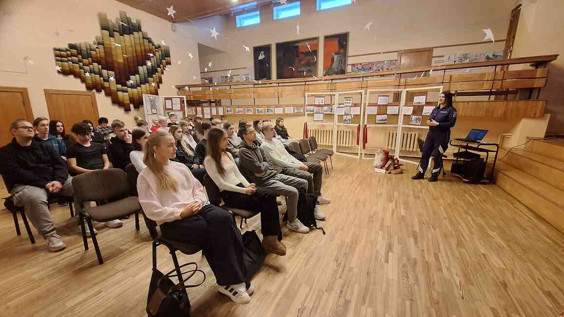 Skolēni uzzināja par Valsts policijas koledžas studiju piedāvājumu pēc 12.klases, kādā kārtībā un kādi dokumenti ir nepieciešami, lai iestātos koledžā, kādas ir studiju programmas un kādas ir priekšrocības, studējot katrā no izvēlētajām programmām. Valsts policijas koledža ir vienīgā izglītības iestāde Latvijā, kas sagatavo un izglīto topošos policistus. Gundega Cauce izstāstīja arī par bonusiem, studējot Valsts policijas koledžā: